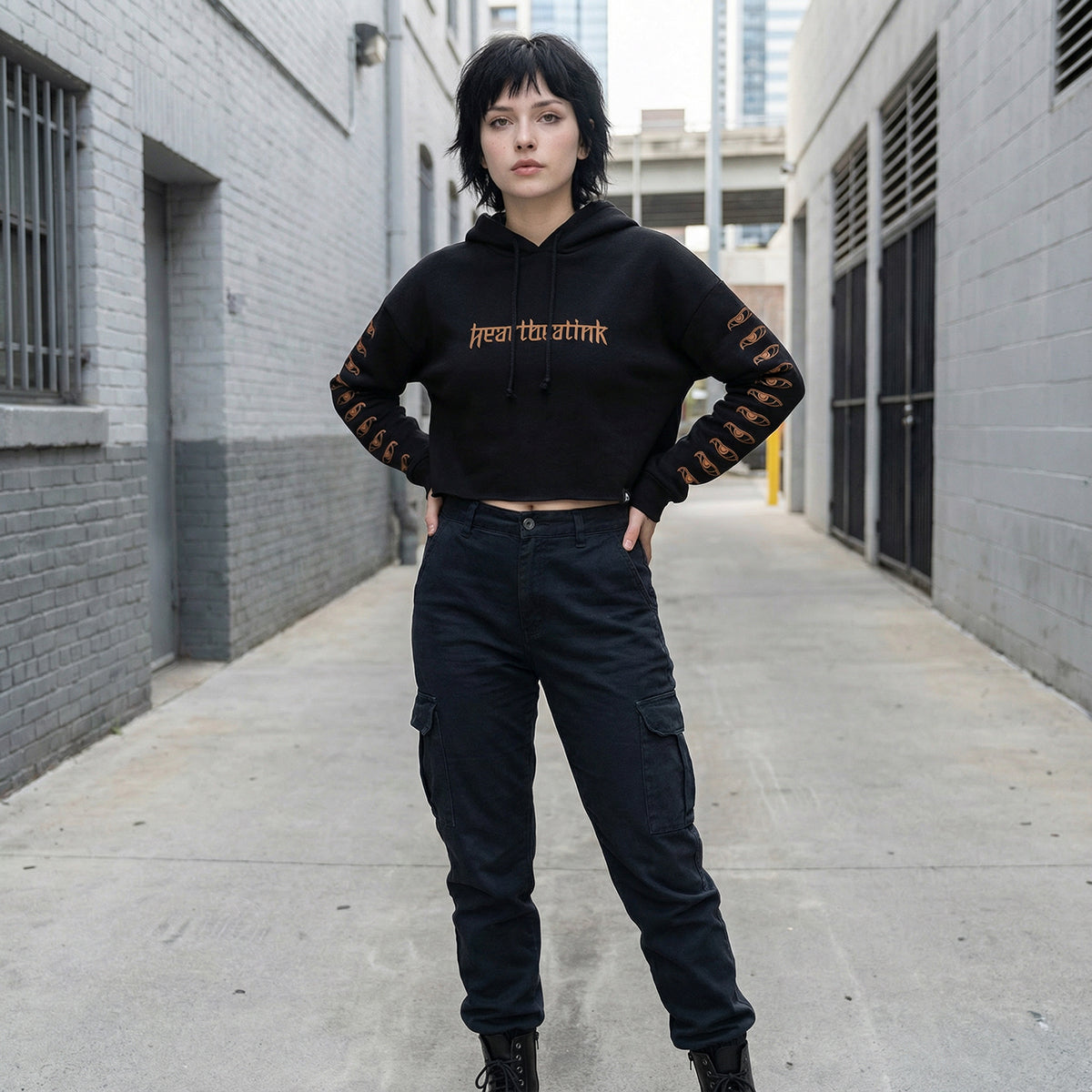HeartbeatInk 22 Eyes black cropped sweatshirt with hoodie